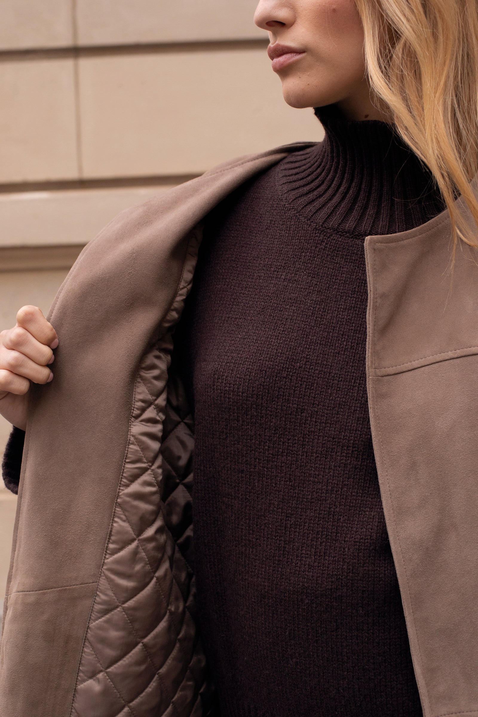 Confectionné dans un luxueux daim certifié LWG, Le Tocqueville, c'est le manteau long must-have de la saison, celui qui élevera votre look pour une silhouette hyper stylée. Sa ceinture ne fait qu’accentuer son allure minimaliste, tandis que sa doublure matelassée vous permettra de le porter même par temps froid.