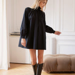 Très sculpturale, Le Trenet, n'est définitivement pas une petite robe noire comme les autres. Allure spectaculaire qu'intemporelle avec son col haut froncé, la robe Le Trenet adopte une silhouette très architecturale, tout en restant épurée et facile à matcher à vos pièces préférées grâce à ses manches ballon et sa silhouette légèrement trapèze. En quelques mots, Le Trenet, c'est la petite robe noire revisitée, rendue encore plus belle et désirable.