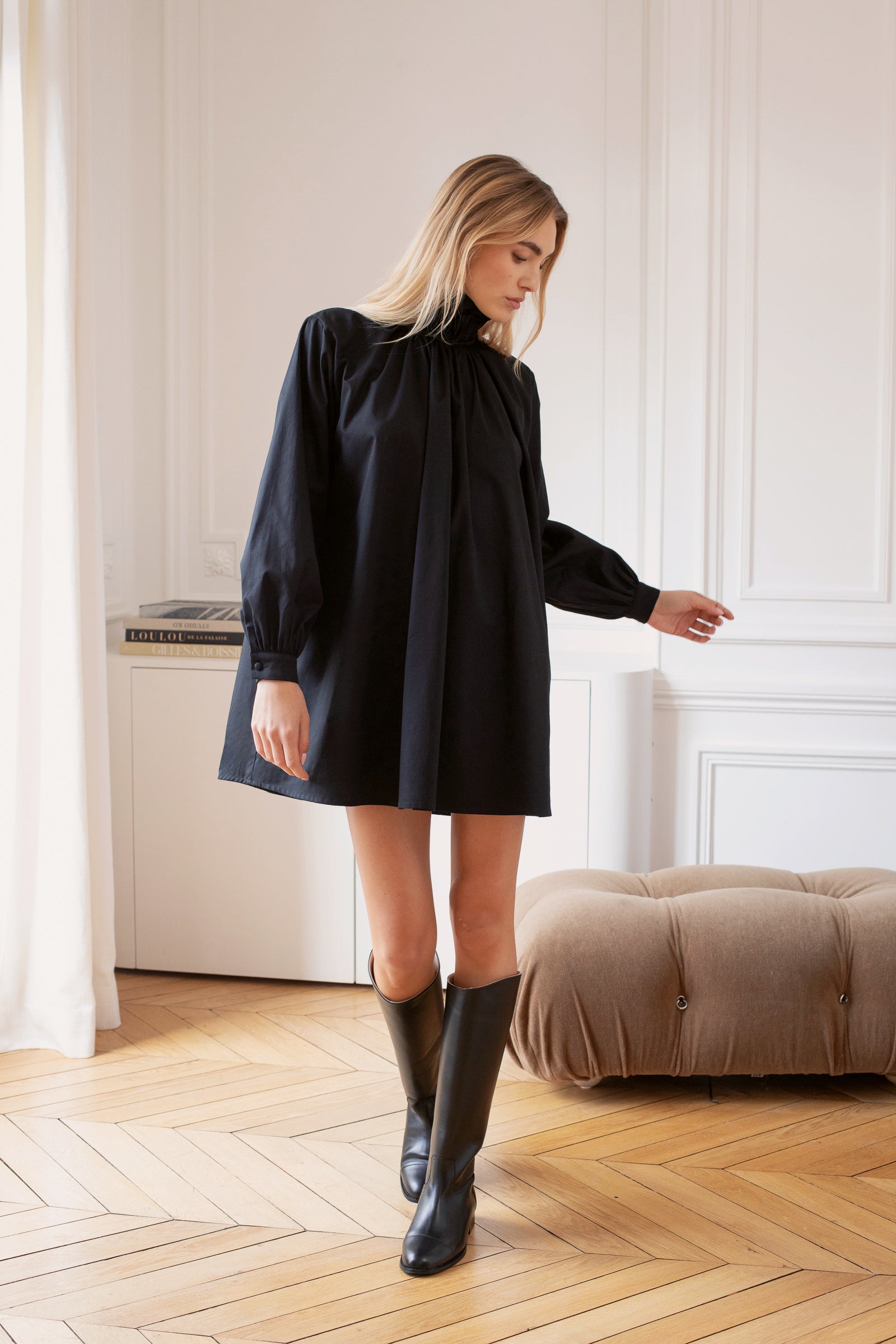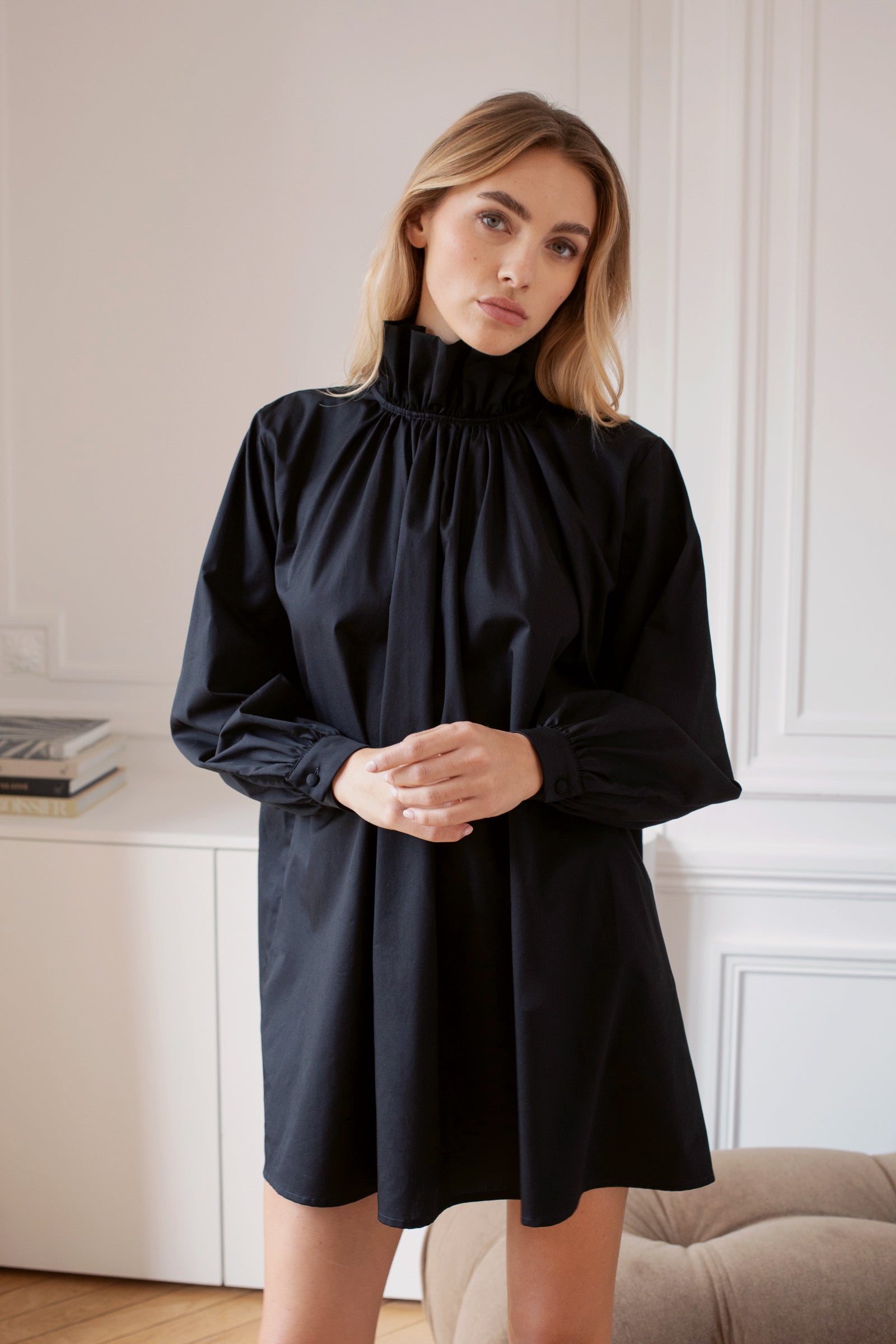 La Petite Robe Noire à Col Montant à Fronces Très Sculpturale