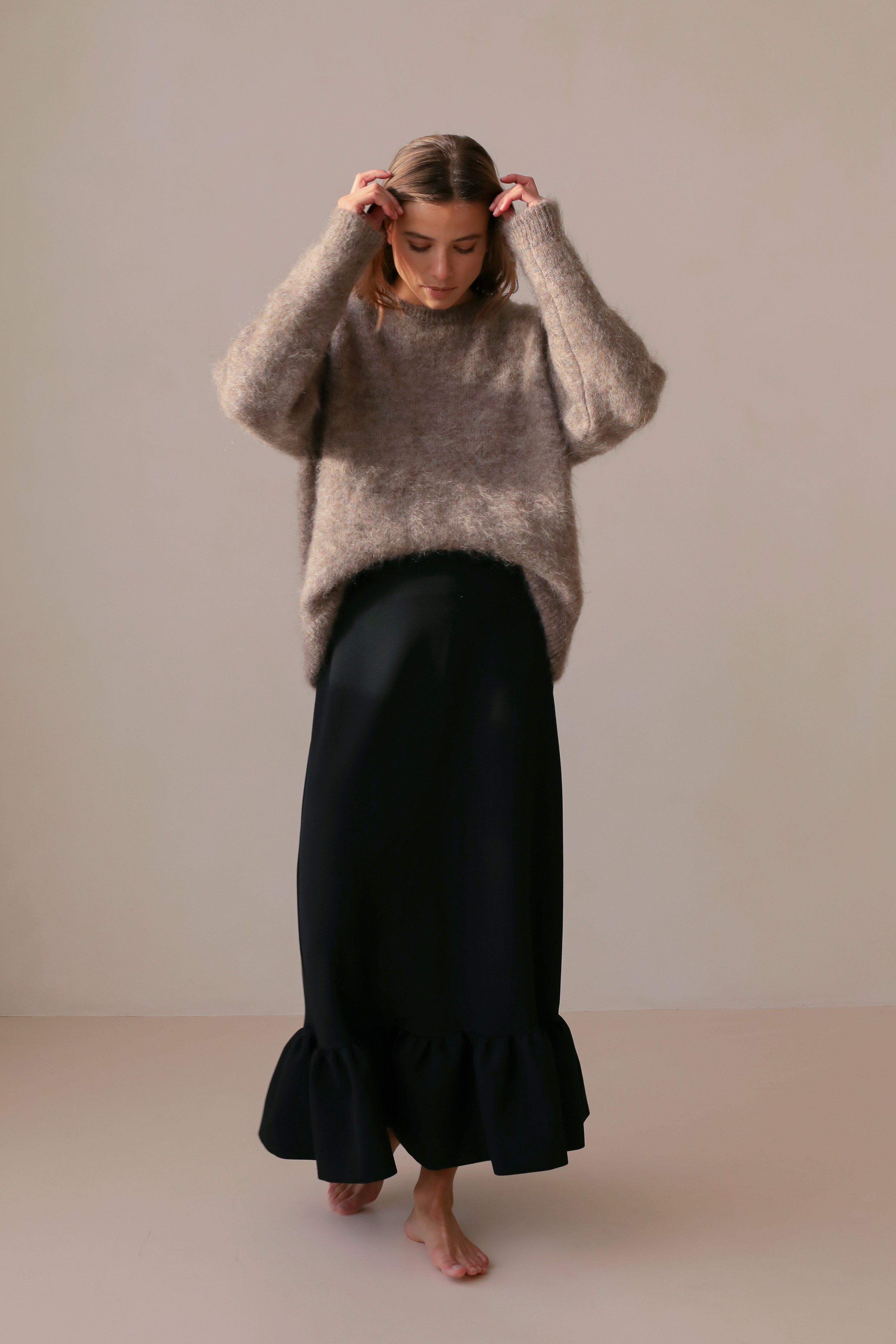 Silhouette sculpturale et très couture, Le Vasarely, c'est la jupe ultime. Longueur midi et confectionnée dans un crêpe lourd upcyclé qui lui donne le volume idéal, Le Vasarely se pare d'un généreux volant à l'ourlet, qui s'animera gracieusement au gré de vos pas. Une pièce terriblement chic qui donnera immédiatement une allure très pointue à votre look.