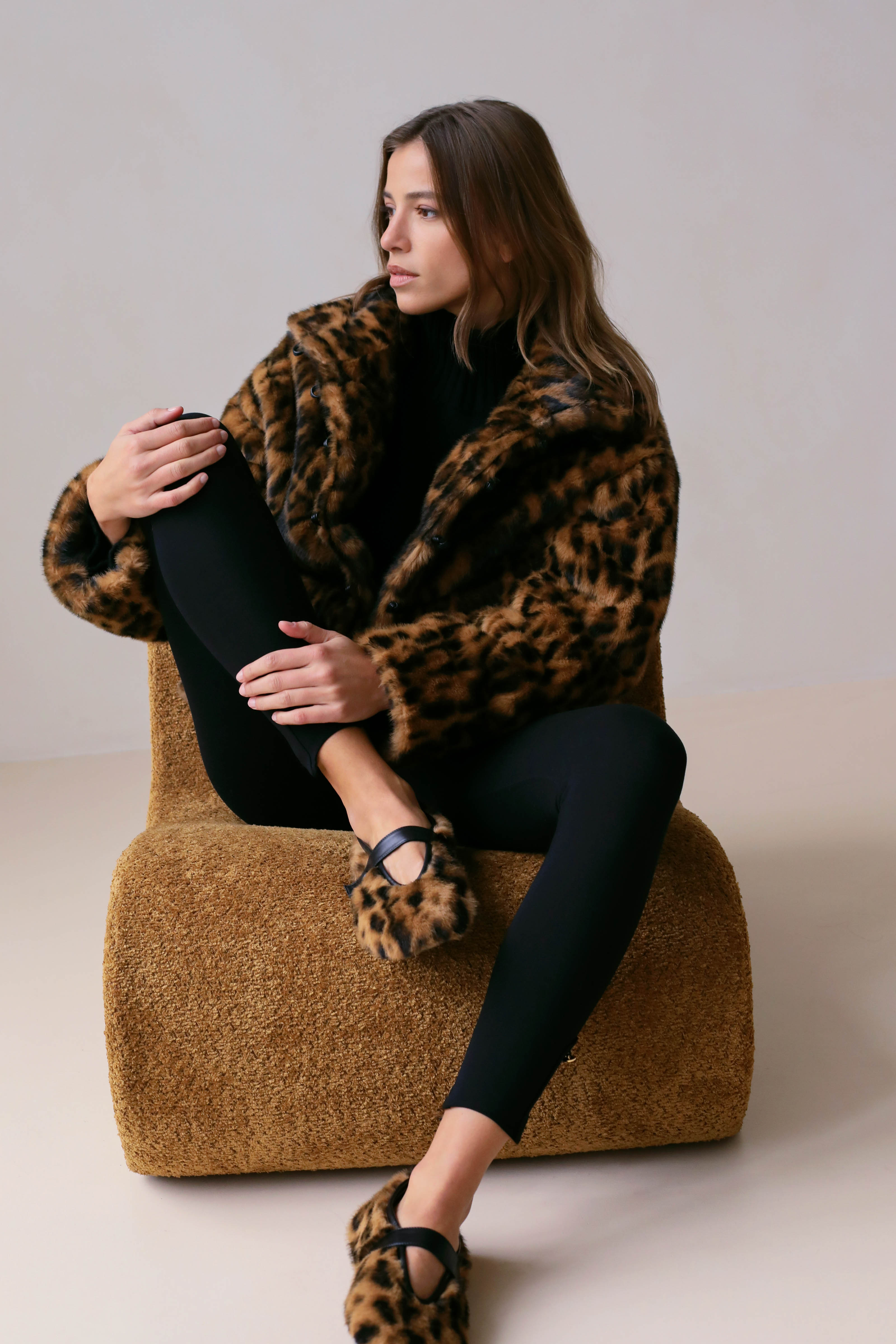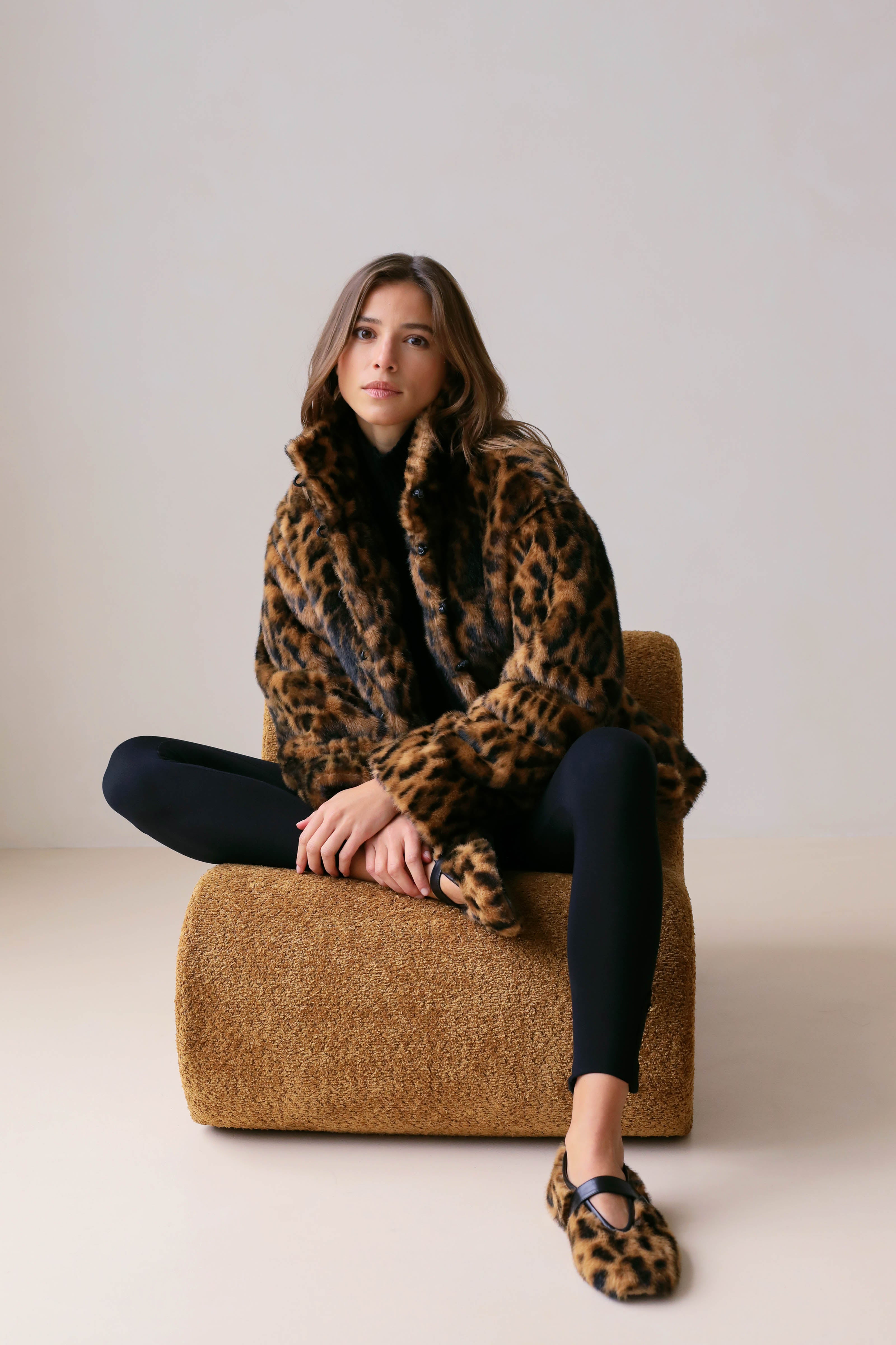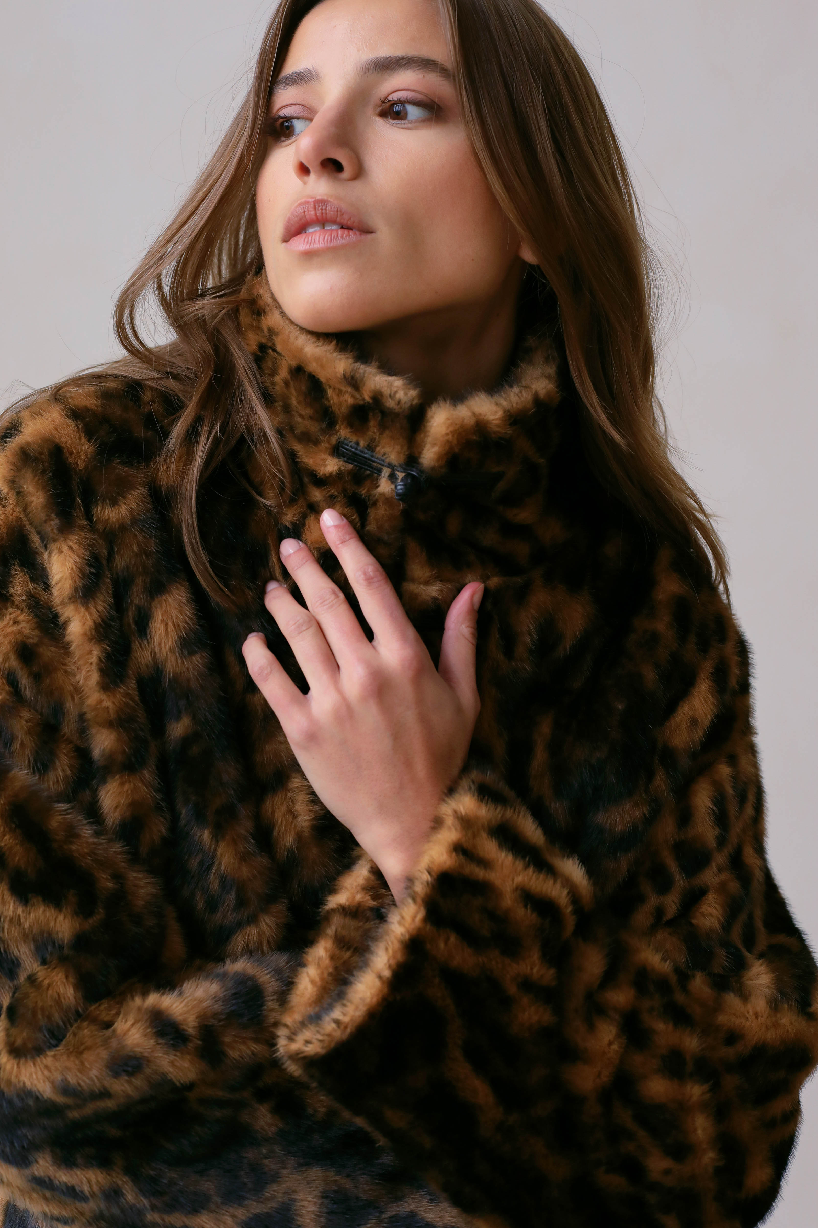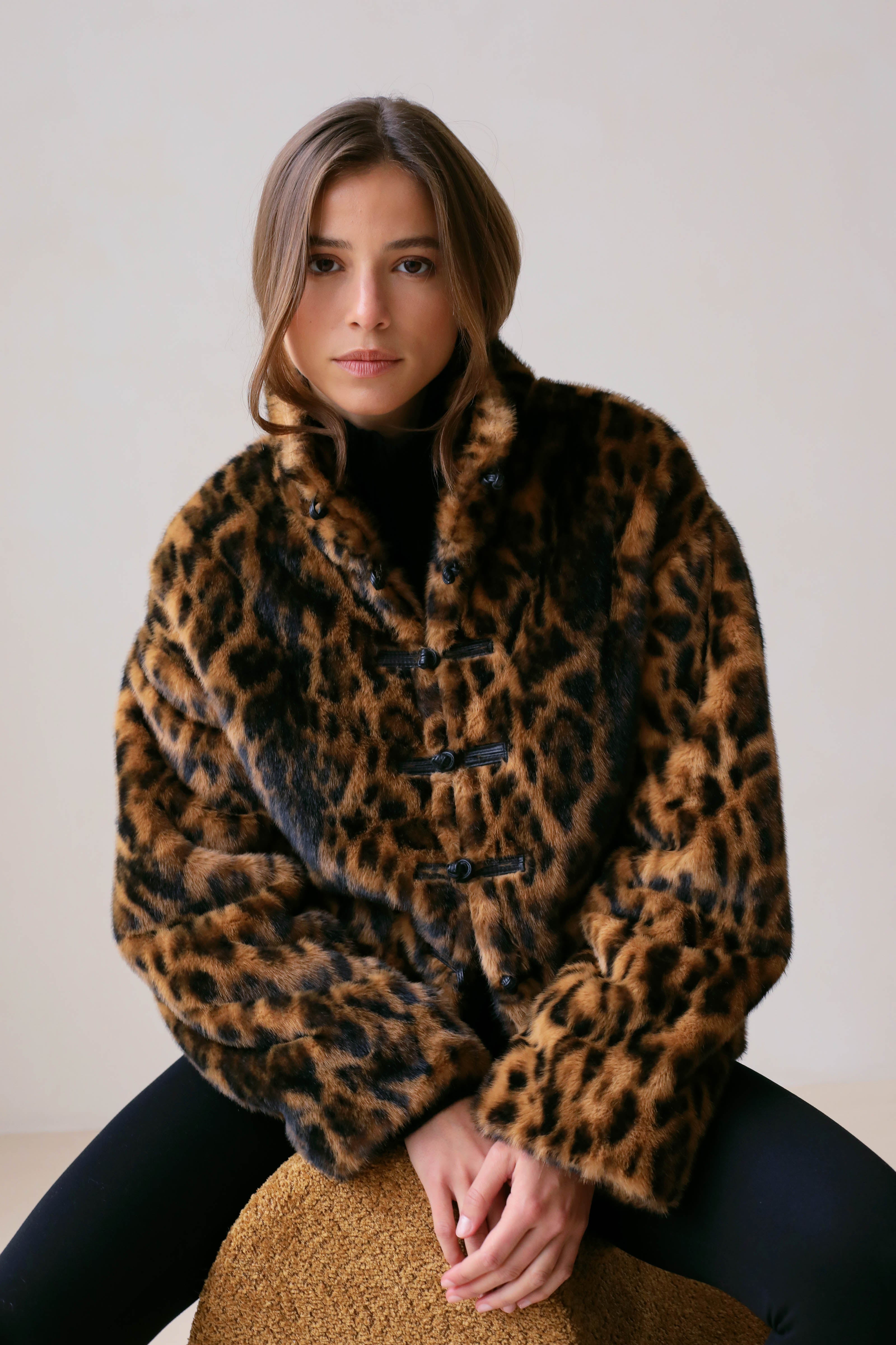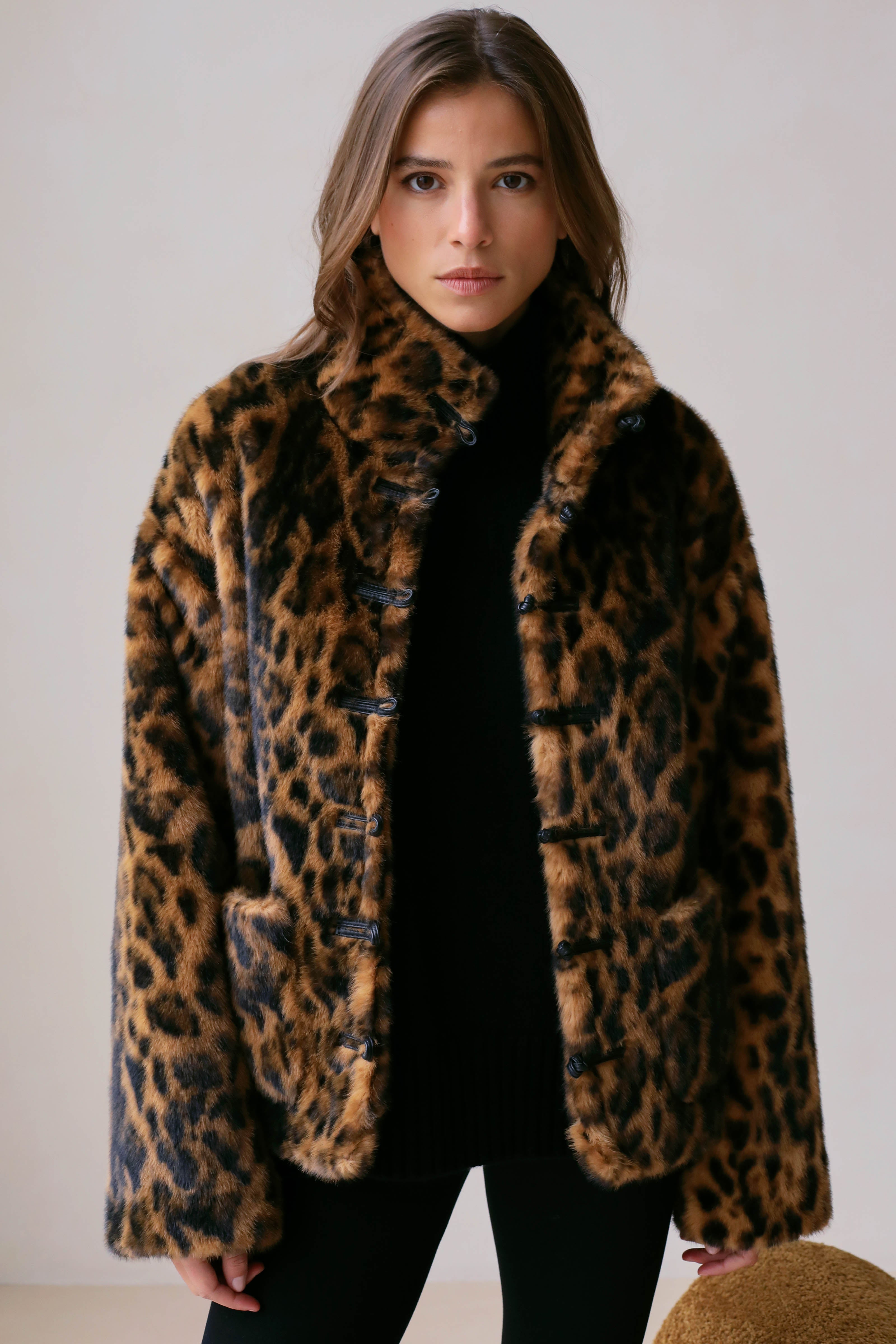 e Manteau en Fausse Fourrure Léopard à Brandebourgs Résolument Mode