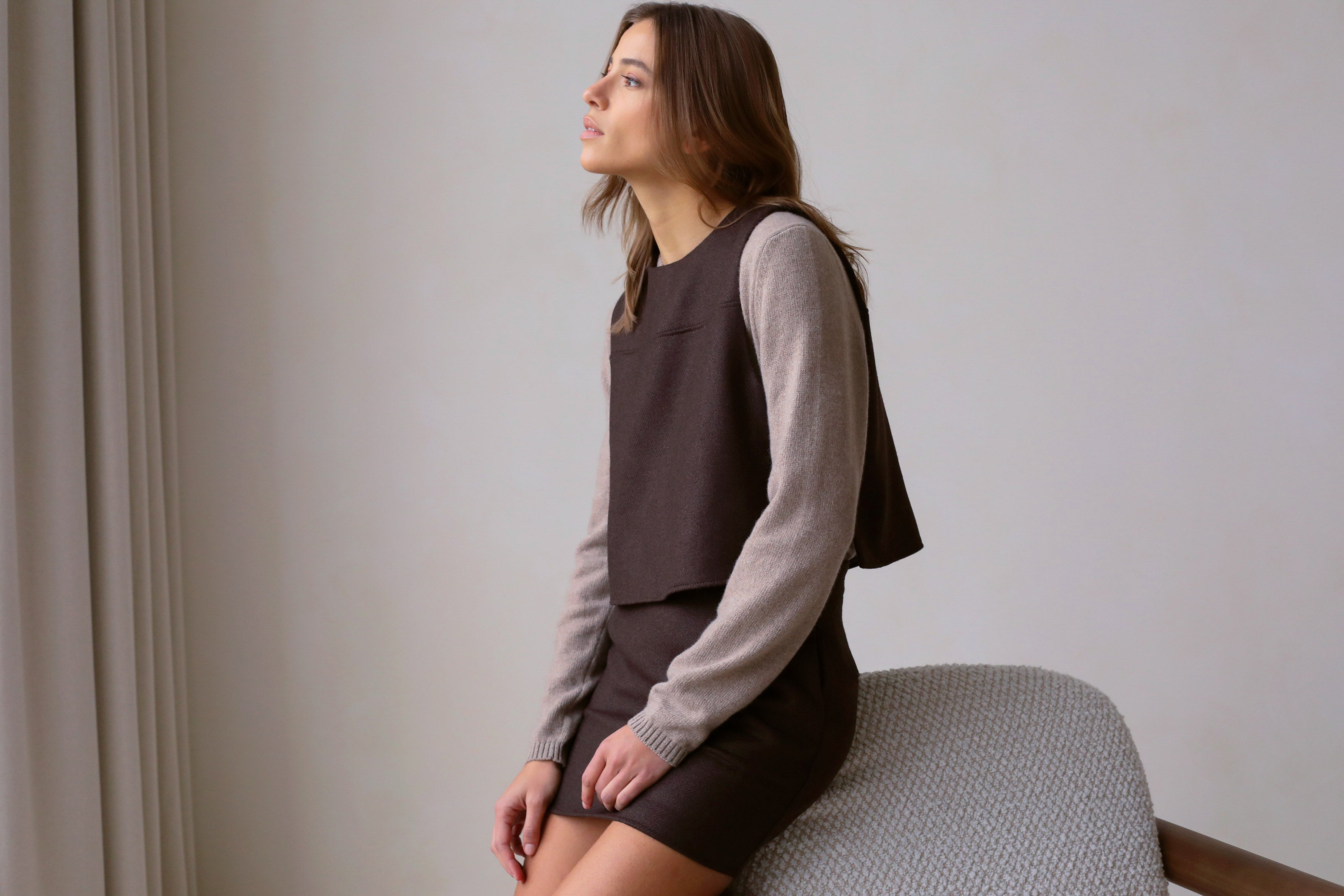 Pour un ensemble impeccable, associez Le Voltaire au top Le Verlaine assorti. Portée seule, il vous suffit d'ajouter une grosse maille et des cavalières pour un look canon.