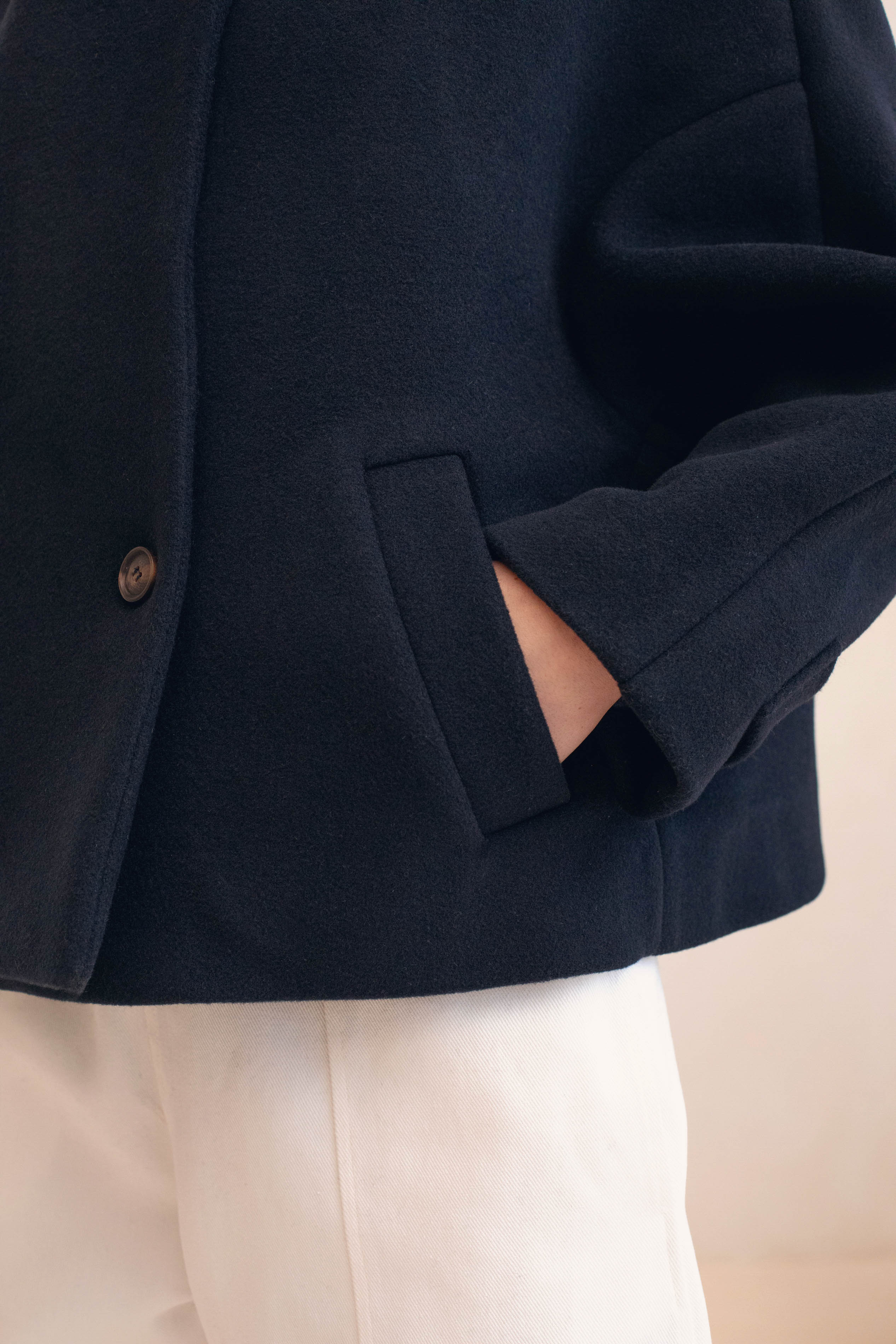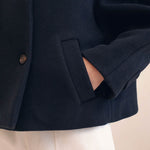 Notre laine double face marine est upcyclée et provient des stocks dormants d'une Maison de Luxe Française. Cette version a été confectionnée en Pologne.