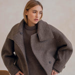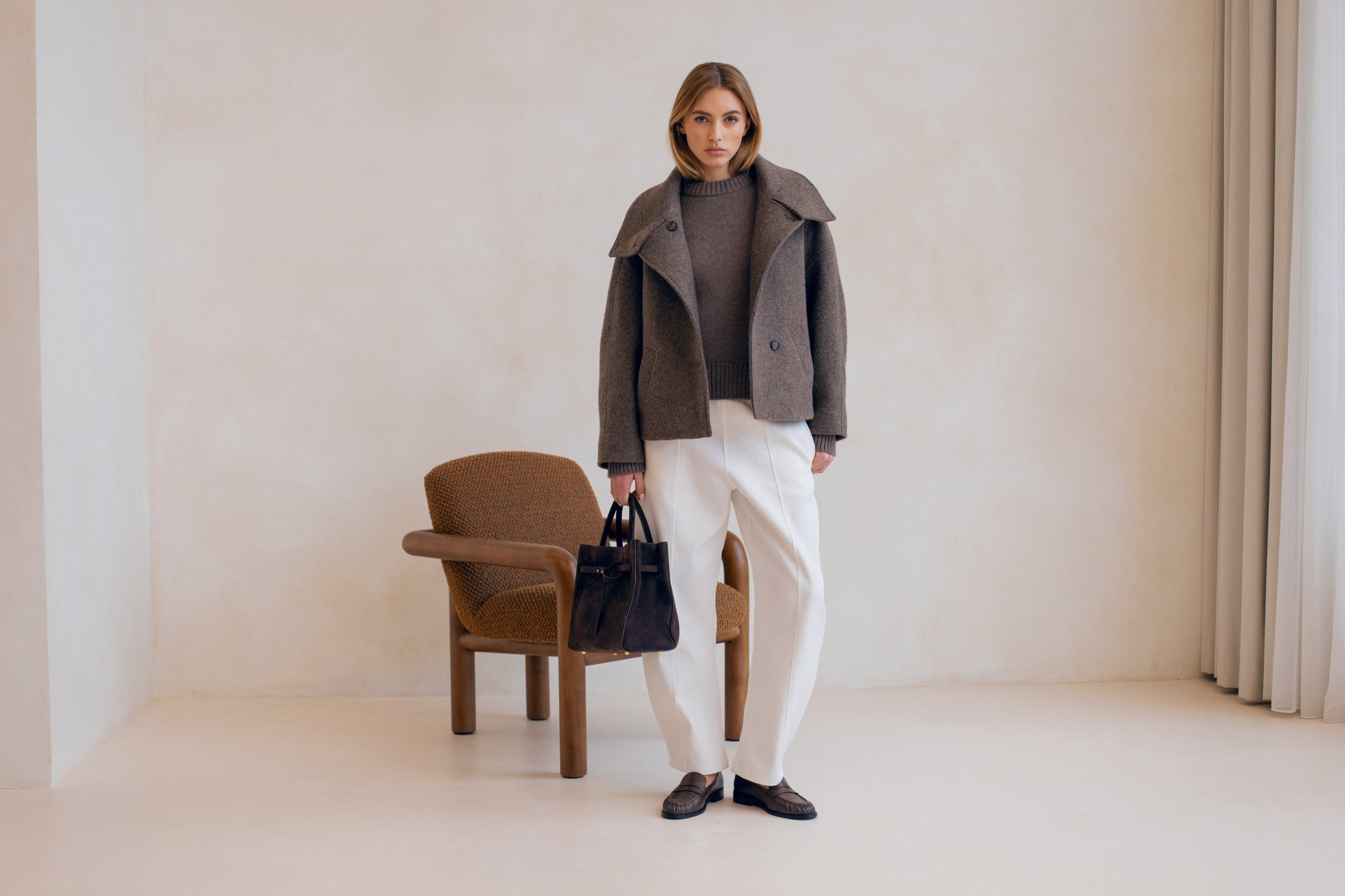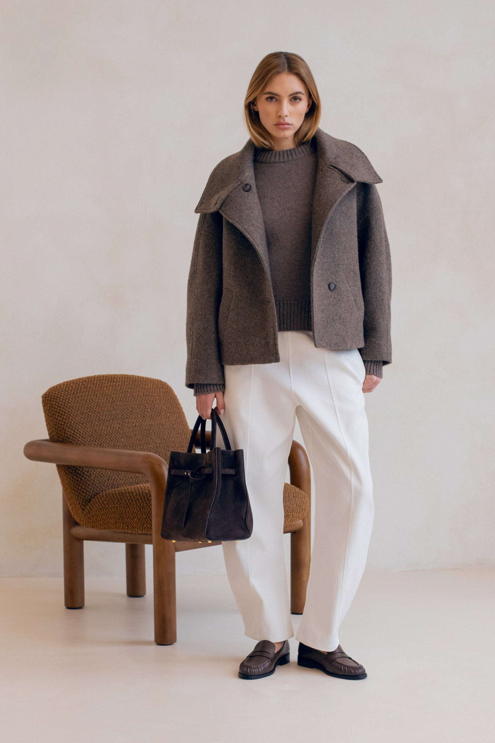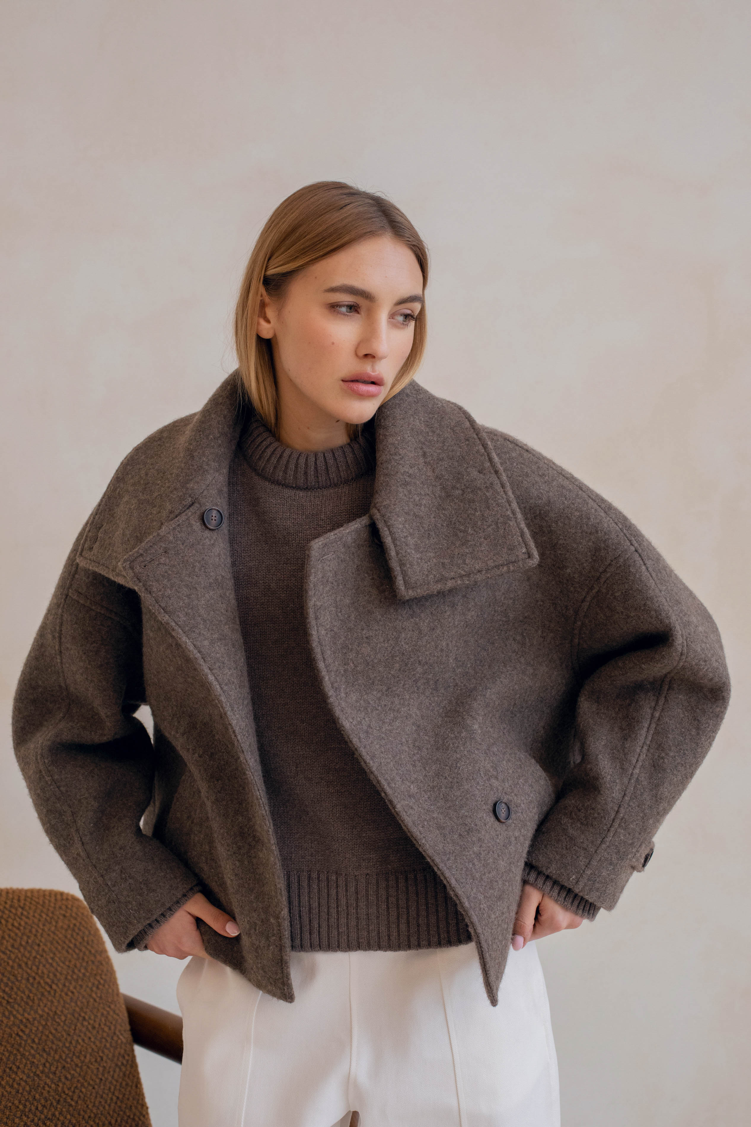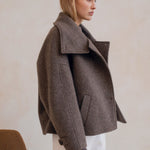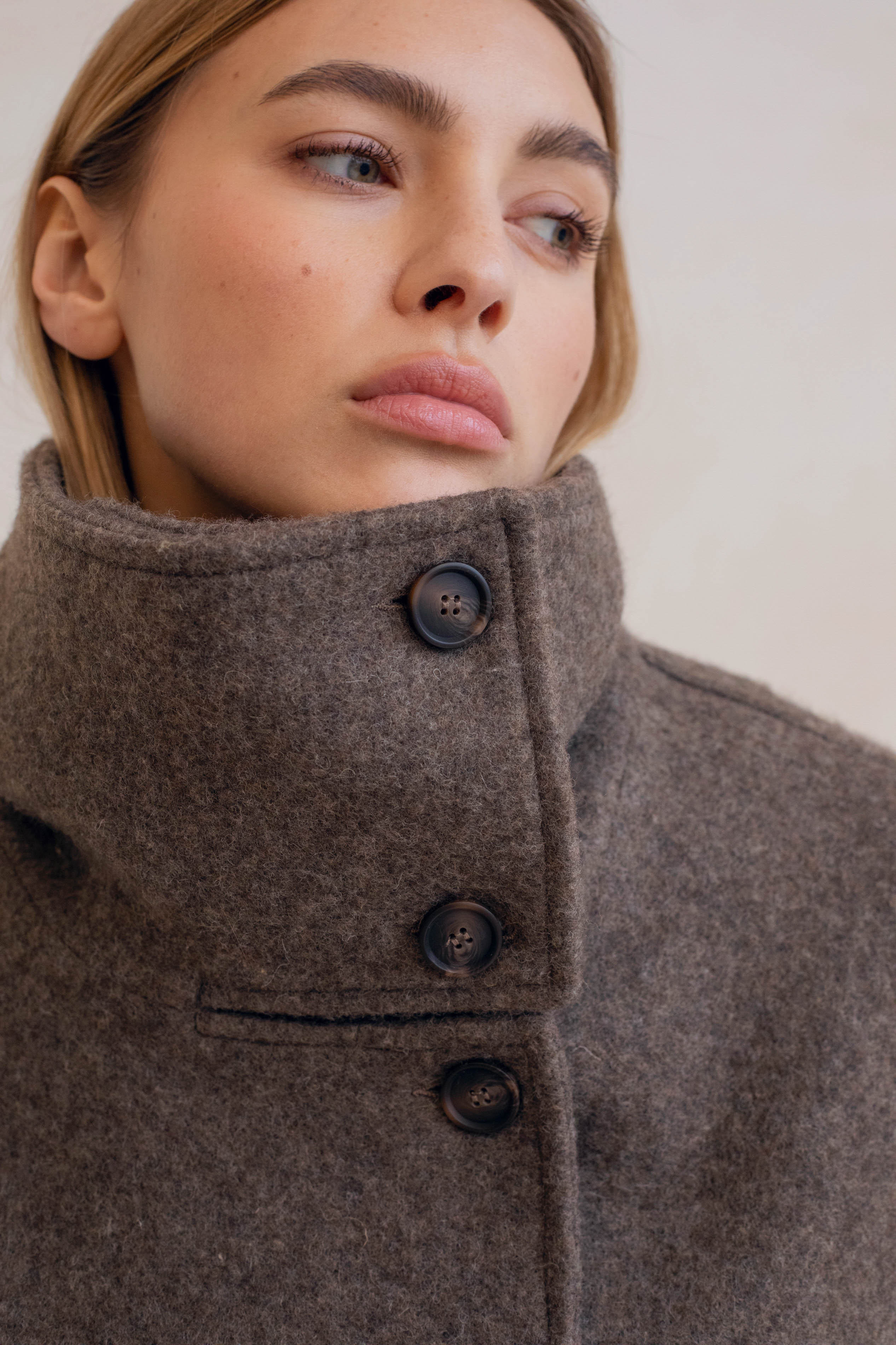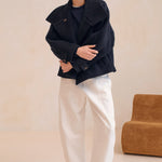 Quand l'architectural rencontre la douceur, cela donne le manteau le plus désirable de la saison, Le Winslet. Coupe subtilement oversized et légèrement trapèze pour une allure résolument moderne, Le Winslet dessine une silhouette hyper couture alliant effortless chic et confort. Son col montant boutonné de façon asymétrique apporte une signature graphique et contemporaine, jouant sur les lignes et les volumes avec justesse. Confectionné dans une laine aussi douce que luxueuse, Le Winslet vous enveloppera sans alourdir, affirmant un style minimaliste et incroyablement chic.