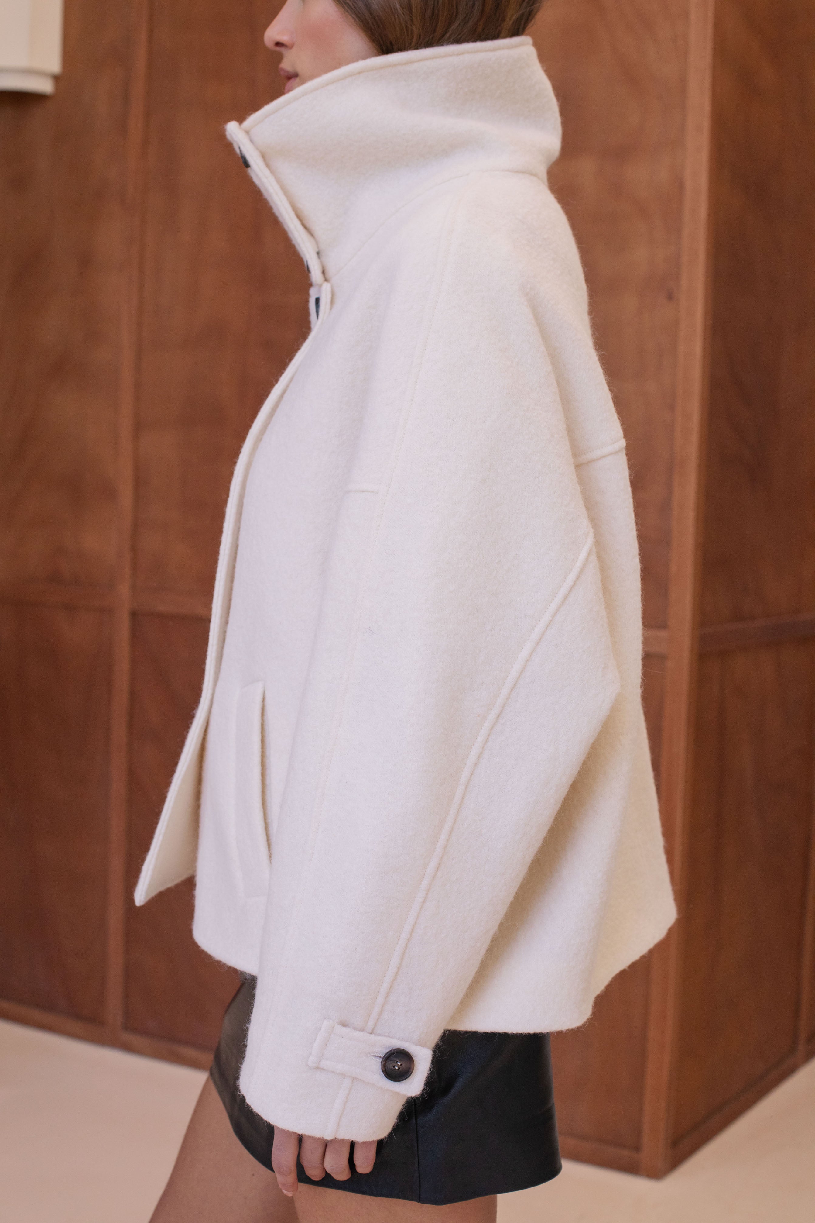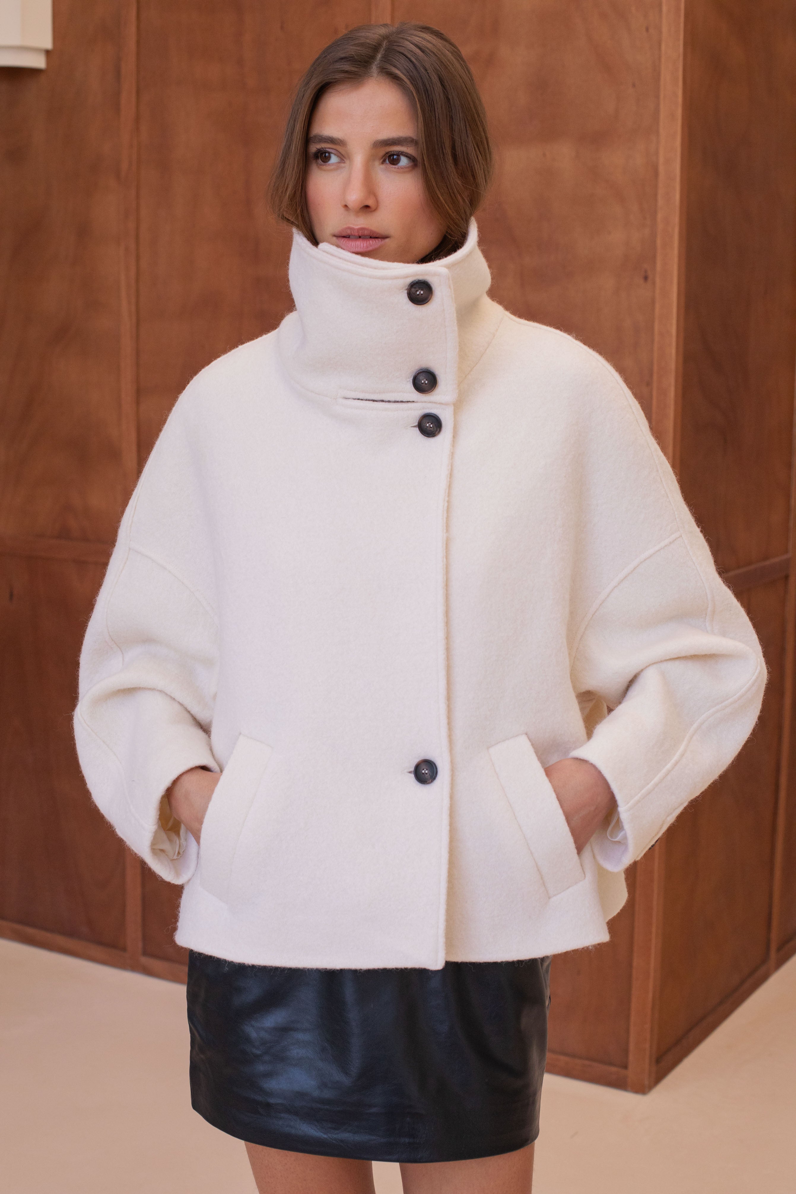 When architecture meets softness, the result is the most desirable coat of the season, Le Winslet. With a subtly oversized, slightly A-line cut for a resolutely modern look, Le Winslet creates a couture silhouette that combines effortless chic and comfort. Its asymmetrically buttoned stand-up collar adds a graphic, contemporary signature, playing with lines and volumes to perfection. Crafted from the softest luxurious wool, Le Winslet will envelop you without weighing you down, asserting a minimalist and incredibly chic style.