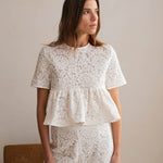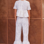 Touche bohème mais ultra chic, le pantalon Le Wonder est la pièce la plus désirable de la saison. Tandis que sa dentelle blanche sublime la silhouette et lui donne un air très couture, sa coupe droite allonge la jambe et se prolonge par un généreux volant pour en faire une pièce aussi must-have qu'unique.